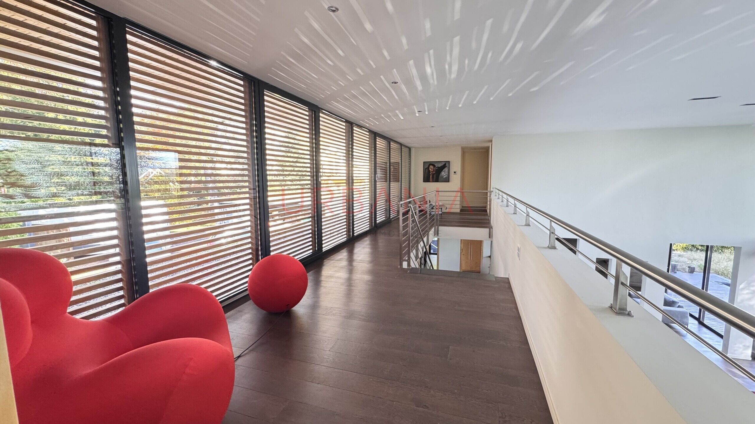 - Spectacular living room with cathedral ceiling height and impressive volumes
