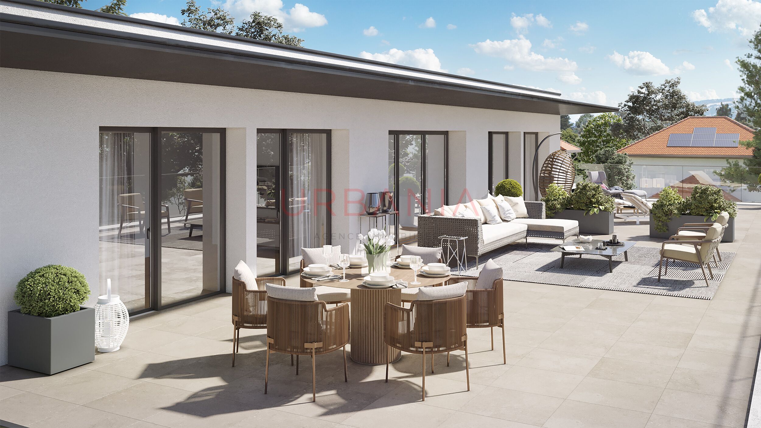 Ideally located in a quiet residential area of Troinex, this superb penthouse offers a gross floor area of 159 m² and a vast 186 m² terrace. Nestled within the Résidence Nova, a new three-storey building, the apartment offers a comfortable, modern living environment. The residence also benefits from a privileged location, close to public transport, schools and sports facilities.