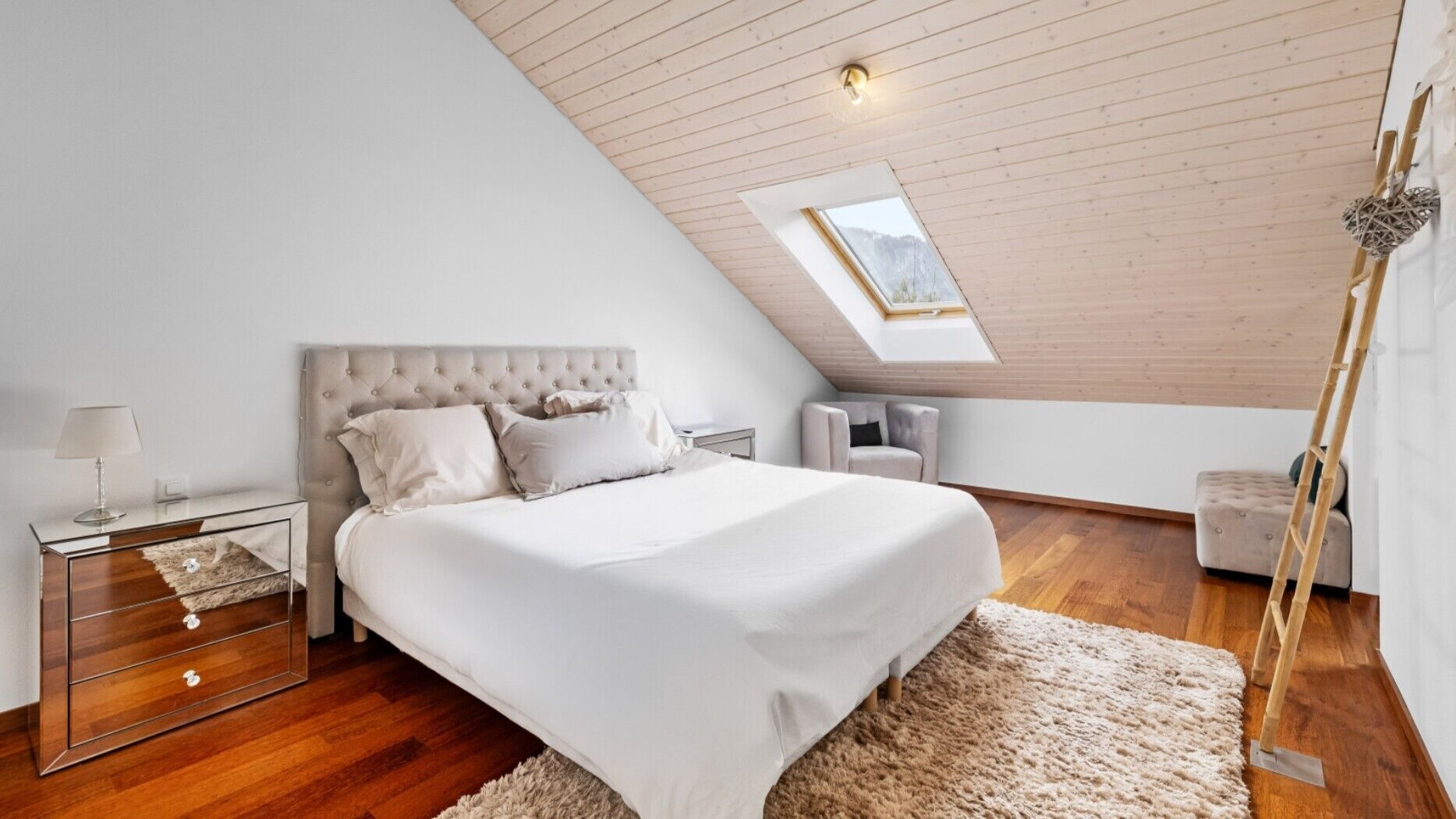 Le deuxième étage est entièrement dédié à une superbe suite parentale, comprenant sa propre salle de bains ainsi qu’un espace bureau ou dressing.